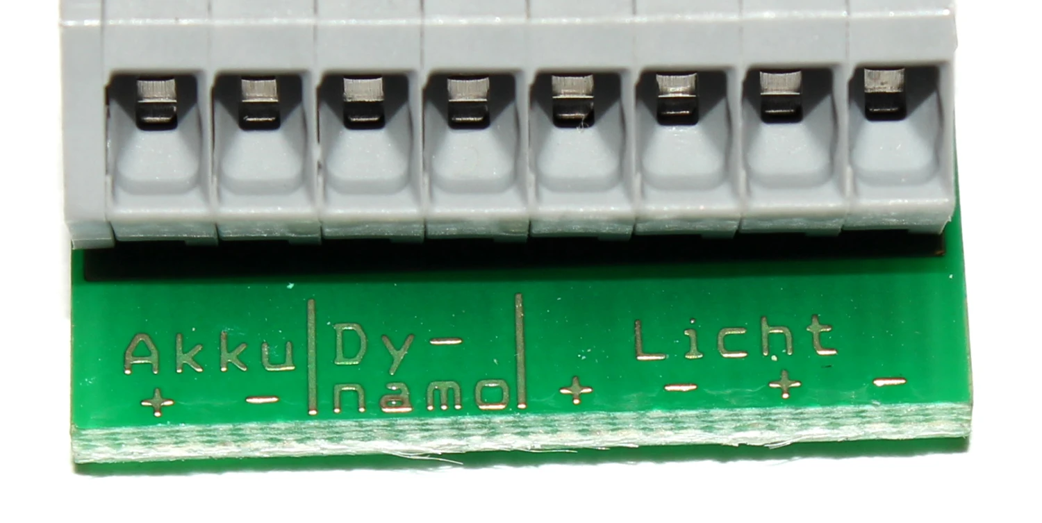 Die Kommunikation zwischen Motor bzw. Akku (26V) und Lichtanlage, sowie zwischen Nabendynamo (6V) und Lichtanlage erfolgt seit seit 2012 direkt am Scheinwerfer.