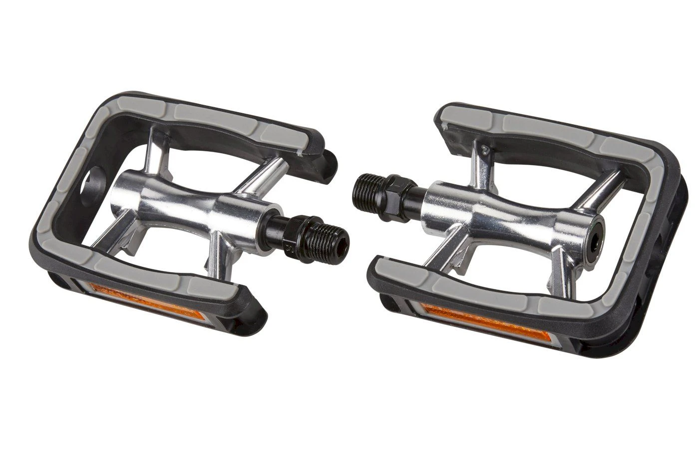 Hochwertige Trekking Pedale der Firma Matrix mit Reflektoren, einem Pedalkörper aus Aluminium und einer CNC gefertigte Cr-Mo Achse. Sie ist leicht und mit gummierten Trittfläche, die für einen sicheren Halt sorgt.